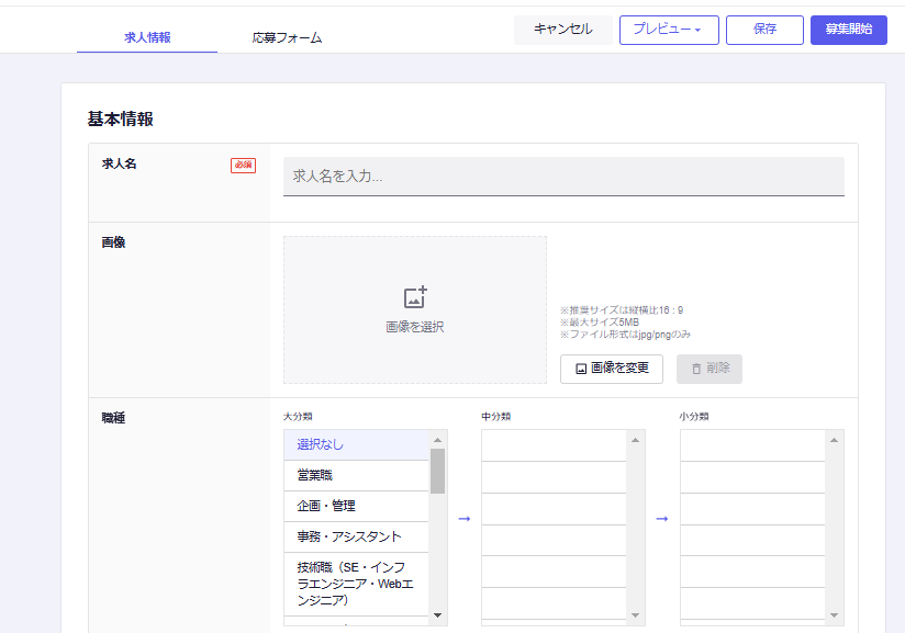 ※求人の募集ステータスが掲載停止または下書きの場合、「募集開始」を押すと公開されます