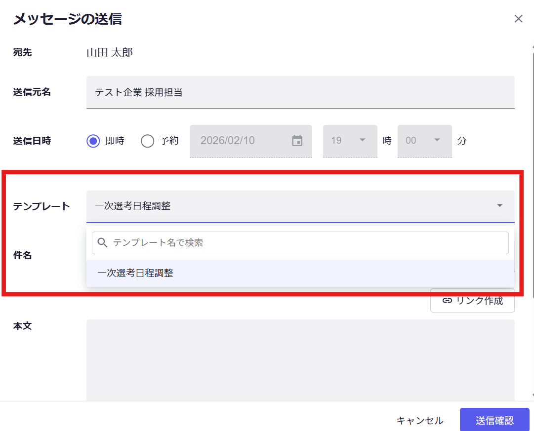 ②メッセージ作成画面で作成したテンプレートを選択