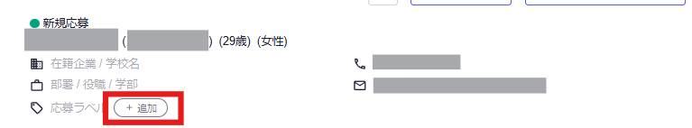 部署や職種など任意のラベルを付与することで、画面上部の検索欄での応募者の絞り込みが可能です。