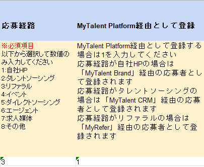 「MyTalent Platform経由として登録」項目で「1」を入力すると、特定のサービス経由の応募としてカウントできます。 ※ご契約中のサービスのみ選択可能です。