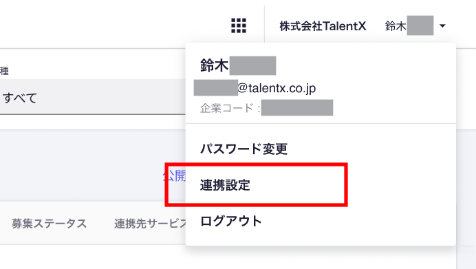 ①MyTalent Platformにログインし、画面右上のアカウント名横にある「▼」マークをクリックします。